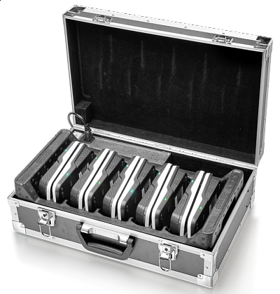 Özel Bridgemate III şarj kutusu, aynı anda 10 cihaza kadar güç sağlar. Kasaya 10 Bridgemate'den oluşan bir tepsi yerleştirin, şebeke gücüne bağlayın ve şarj işlemi otomatik olarak başlar — USB kablosu veya tek tek bağlantı gerekmez.